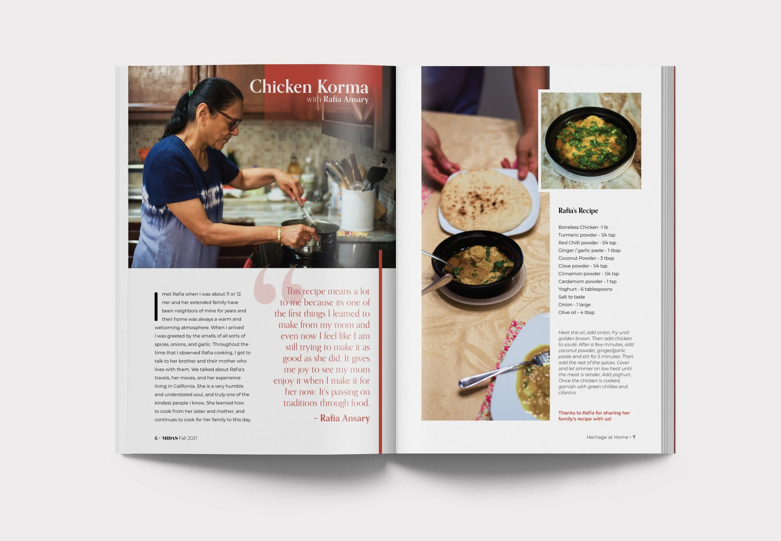 The Fall 2021 issue (below) won two awards in a contest hosted in New York City in early 2022 from the College Media Association. We won first place for their NYC22 Design Contest with the opening spread of the Heritage at Home article, and received an Honorable Mention for Best Magazine Cover.