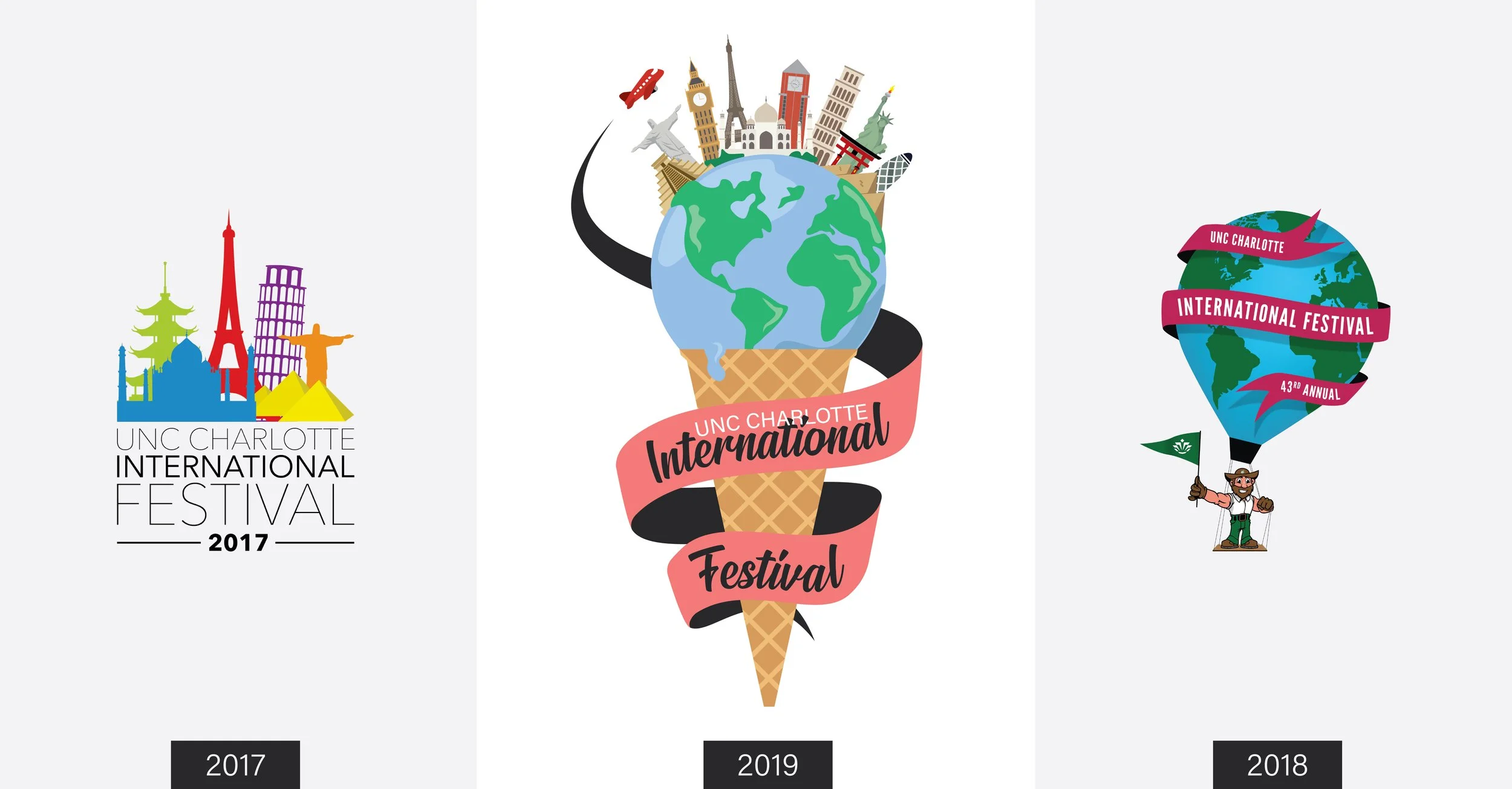 The UNC Charlotte International Festival is centered around booths arranged in colorful marketplace style and as such I have designed the logos to be fun and inclusive to represent and celebrate the vibrant people, places, and cultures from all over the globe.